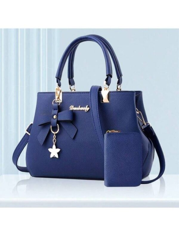 Elevate your everyday style with the 2pcs/Set Ladies Solid Color Handbag and Card Pouch. This elegant and practical set is designed to meet the demands of daily life, whether you’re shopping, commuting to work, or heading to school. The sophisticated bow knot pendant adds a charming touch to its minimalistic design, making it perfect for any occasion.