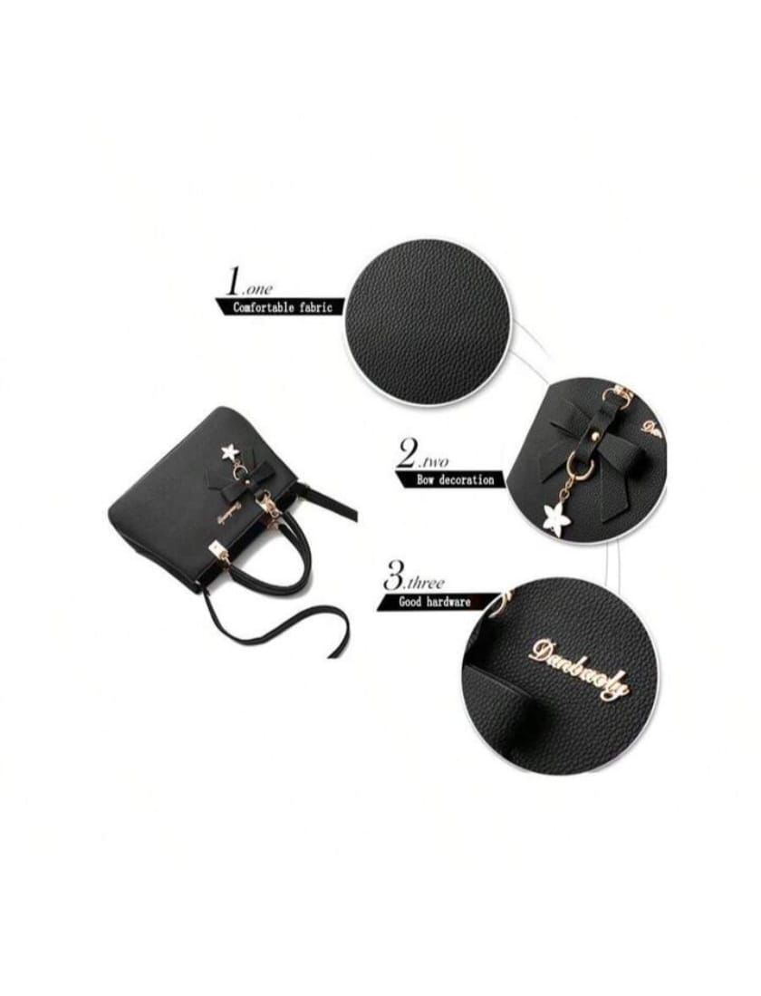 Elevate your everyday style with the 2pcs/Set Ladies Solid Color Handbag and Card Pouch. This elegant and practical set is designed to meet the demands of daily life, whether you’re shopping, commuting to work, or heading to school. The sophisticated bow knot pendant adds a charming touch to its minimalistic design, making it perfect for any occasion.