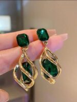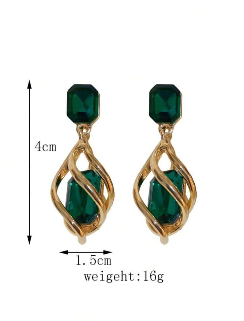 Add a touch of geometric glamour to your wardrobe with our Green & Diamond Drop Necklace and Earrings Set.