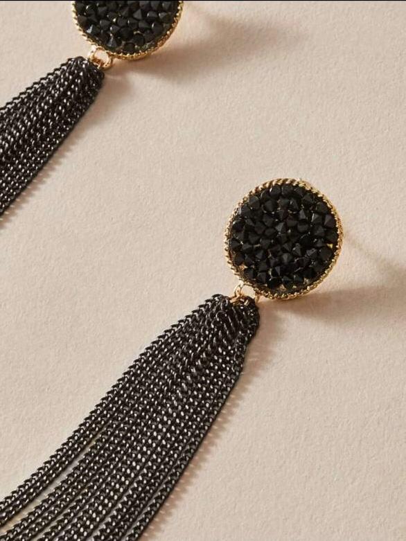 Add a touch of glamour to your outfit with our stunning Tassel Drop Earrings in sleek black.